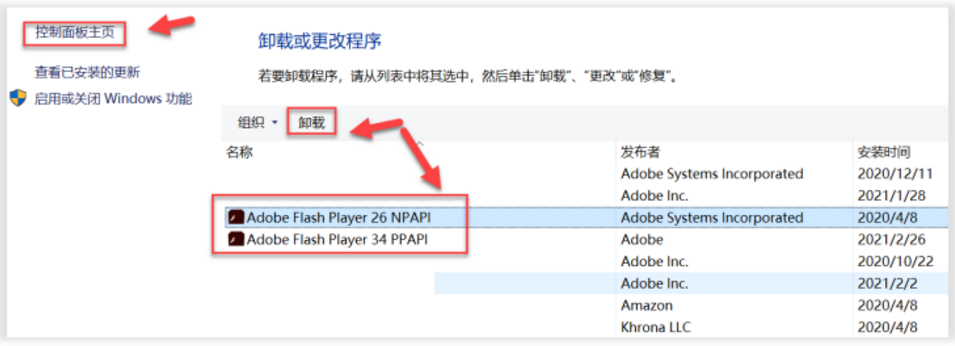 2. ½øÈë¿ØÖÆÃæ°å-³ÌÐòºÍ¹¦Ð§£¬£¬£¬£¬£¬£¬£¬£¬ÊÖ¶¯Ð¶ÔØFlash player¡£¡£¡£¡£¡£¡£