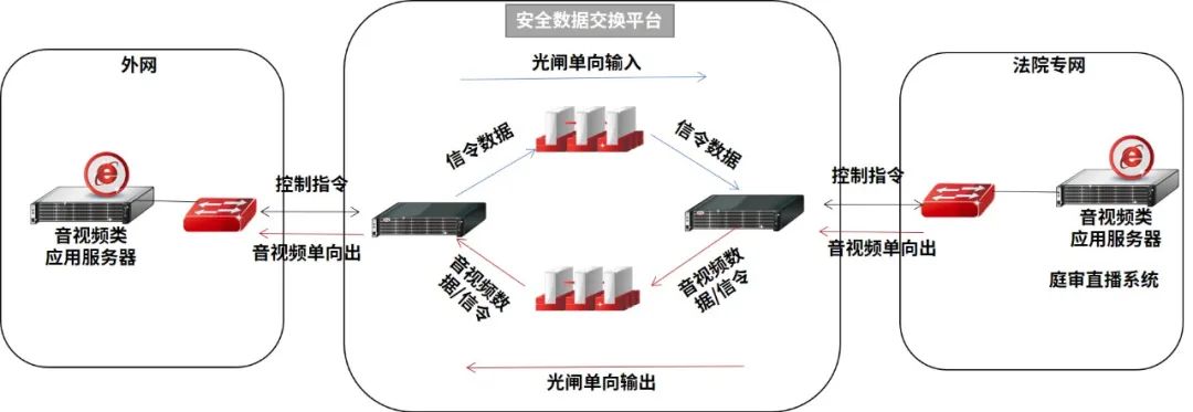 ÔÚÏßÉÏÍ¥É󳡾°Ï£¬£¬£¬£¬£¬£¬£¬»¥ÁªÍøºÍ·¨Ôº×¨ÍøÖ®¼ä±£´æÒôÊÓÆµÊý¾ÝµÄ½»»¥£¬£¬£¬£¬£¬£¬£¬Á½ÍøÖ®¼äͨ¹ý°²ÅÅǰºóÖ÷þÎñÆ÷ºÍÁ½Ì¨¹âÕ¢×é³ÉÒ»Ì×Çå¾²Êý¾Ý½»Á÷ƽ̨£¬£¬£¬£¬£¬£¬£¬½¨Éè¸ôÀë½»Á÷Çø£¬£¬£¬£¬£¬£¬£¬ÓÉǰºóÖ÷þÎñÆ÷¶ÔÒôÊÓÆµÊý¾Ý¾ÙÐÐʶ±ðºÍ¹ýÂË£¬£¬£¬£¬£¬£¬£¬¹âÕ¢¾ÙÐÐÎïÀí¸ôÀ룬£¬£¬£¬£¬£¬£¬ÊµÏÖ·¨Ôº×¨ÍøÒôÊÓÆµ·þÎñÆ÷ÓëÍâÍøÒôÊÓÆµ·þÎñÆ÷Ö®¼äµÄÒôÊÓÆµÊý¾ÝºÍÒôÊÓÆµÐÅÁîË«Ïò´«Ê䣬£¬£¬£¬£¬£¬£¬°ü¹ÜÒôÊÓÆµÊý¾ÝµÄʵʱ½»Á÷£¬£¬£¬£¬£¬£¬£¬È·±£ÏßÉÏÍ¥ÉóÓªÒµµÄÇå¾²ÔËÐС£¡£¡£¡£¡£