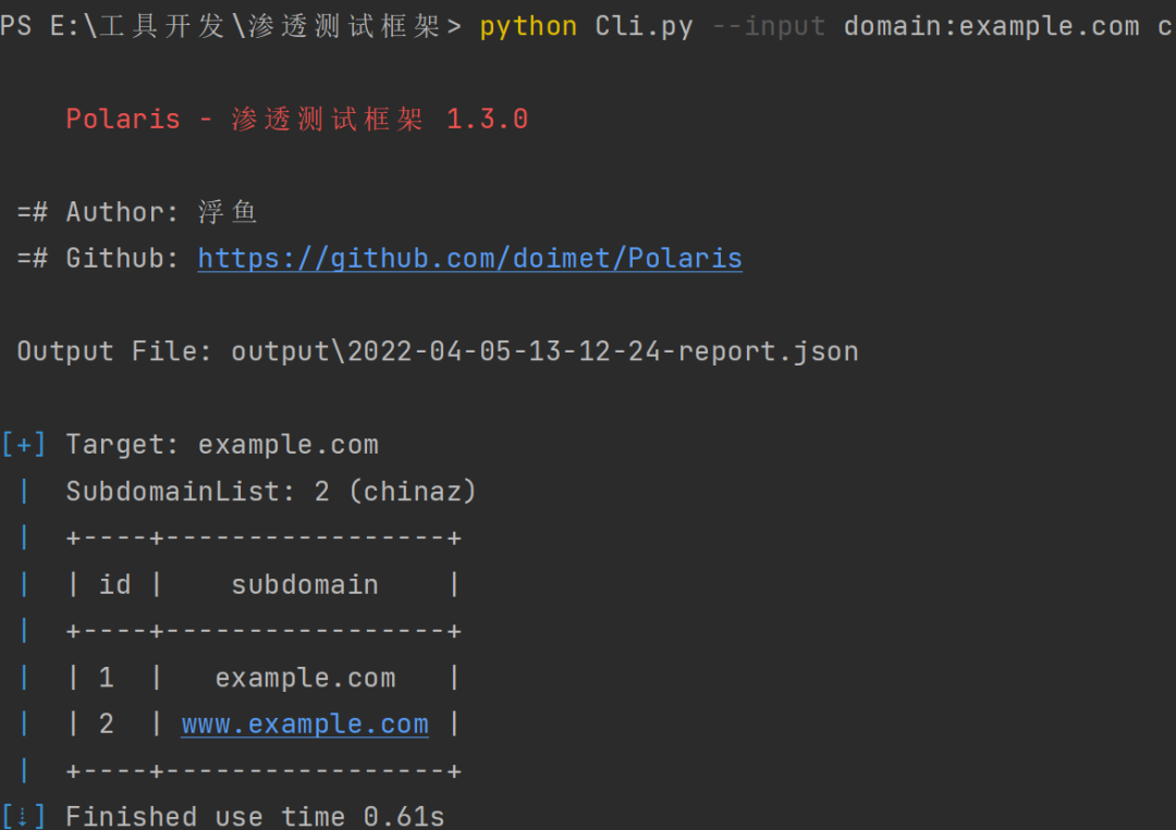python Cli.py --input domain:example.com collect --plugin chinaz