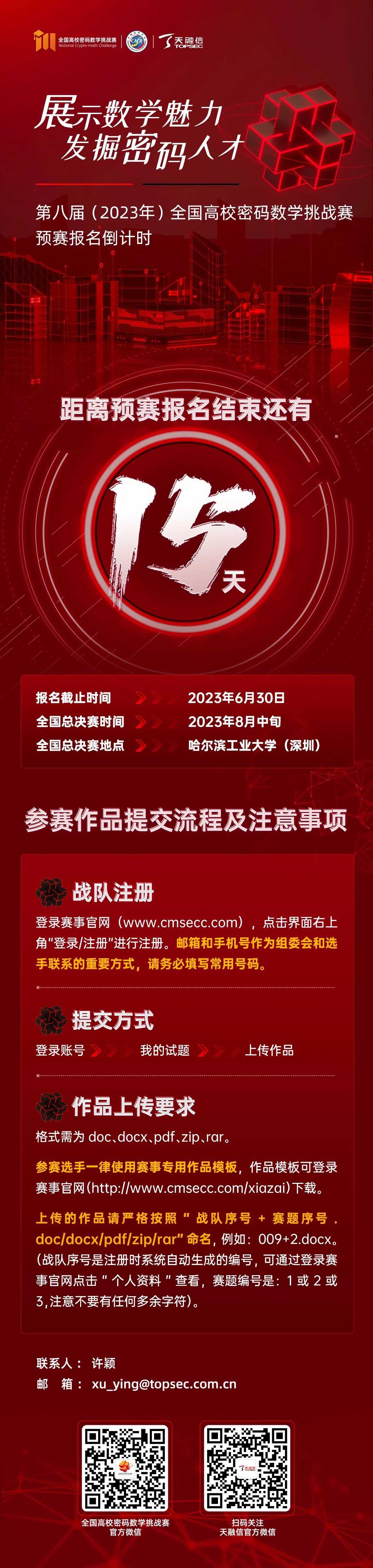 µ¹¼ÆÊ±15Ì죡µÚ°Ë½ì£¨2023Ä꣩ÌìϸßУÃÜÂëÊýѧÌôÕ½ÈüÔ¤Èü±¨Ãû¼´½«×èÖ¹