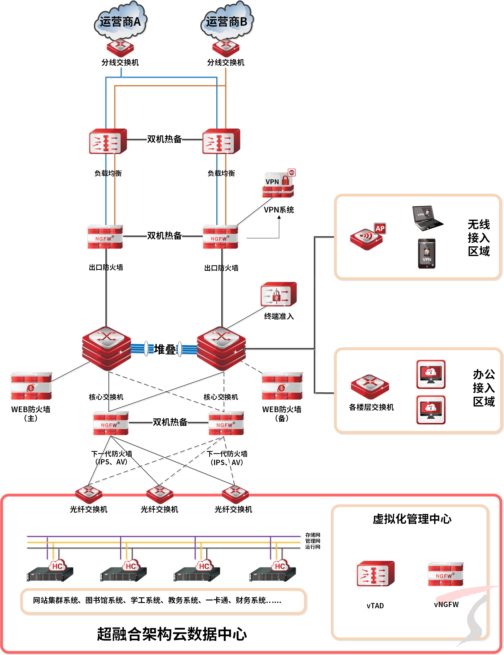 ³¬ÈÚºÏÆ½Ì¨¼Ü¹¹ÍøÂç²ãÉè¼ÆÎªÓªÒµÍø¡¢´æ´¢ÍøºÍ¹ÜÀíÍø£¬£¬£¬£¬ £¬£¬£¬£¬ÈýÕÅÍøÂçÆ½Ãæ¸÷˾ÆäÖ°»¥²»×ÌÈÅ£¬£¬£¬£¬ £¬£¬£¬£¬ÈκÎÒ»ÕÅÍø¹ÊÕϲ»Ó°ÏìÆäËûÍøÂçÊÂÇ飻£»£»£»£»£» £»³ý¼Ü¹¹Éè¼ÆÉϸôÀëÍ⣬£¬£¬£¬ £¬£¬£¬£¬Ã¿ÕÅÍø½ÓÄÉÁ½¸öÎïÀíÍø¿ÚÒԾۺϵķ½·¨ÊµÏָ߿ɿ¿Éè¼Æ£¬£¬£¬£¬ £¬£¬£¬£¬ÔÚ·ºÆðÄ£¿ £¿£¿£¿£¿éËɶ¯¡¢ÍøÏß¹ÊÕϵÈÇéÐÎÏ£¬£¬£¬£¬ £¬£¬£¬£¬ÓªÒµÈÔÒ»Á¬ÎȹÌÔËÐС£¡£¡£¡£¡£¡£
