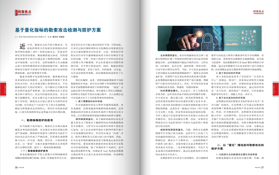 ¡¶ÖйúÐÅÏ¢Çå¾²¡·¿¯µÇ£º»ùÓÚÁ¿»¯Ö¸±êµÄÀÕË÷¹¥»÷¼ì²âÓë·À»¤¼Æ»®