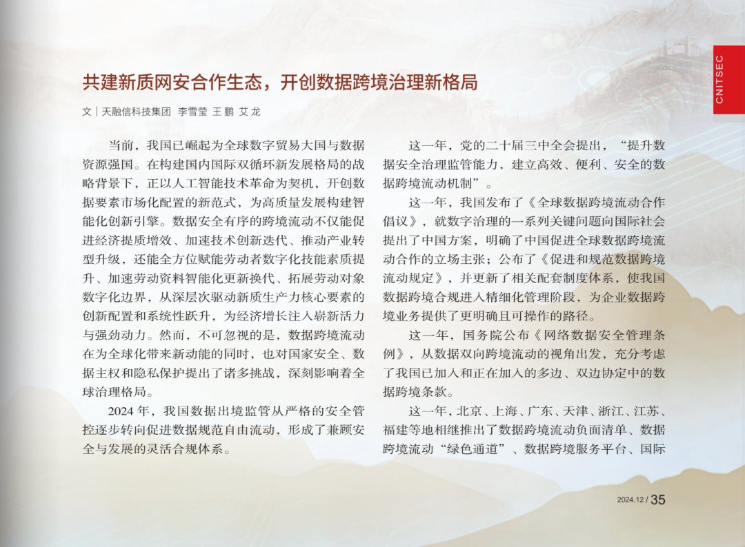 ¡¶ÖйúÐÅÏ¢Çå¾²¡·¿¯µÇ£º¹²½¨ÐÂÖÊÍø°²ºÏ×÷Éú̬£¬£¬£¬£¬£¬¿ª´´Êý¾Ý¿ç¾³ÖÎÀíÐÂÃûÌÃ