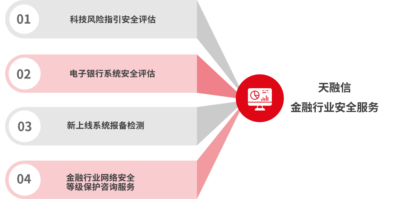 ½ðÈÚÐÐÒµÇå¾²·þÎñÄÚÈÝ·ÖΪ¿Æ¼¼Î£º¦Ö¸ÒýÇå¾²ÆÀ¹À¡¢µç×ÓÒøÐÐϵͳÇå¾²ÆÀ¹À¡¢ÐÂÉÏÏßϵͳ±¨±¸¼ì²âÒÔ¼°½ðÈÚÐÐÒµÍøÂçÇ徲Ʒ¼¶±£» £»£» £»£»£»¤×Éѯ4¸ö·þÎñ×ÓÏî